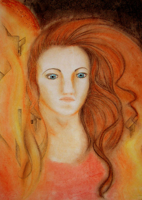 Lily Pastellkreiden, Kohle, Gelstifte, Glitzer, Photoshop Elements Inspiriert vom Lied "Feuerkind" von Subway to Sally aus dem Album "Nord Nord Ost" Kategorie: Sonstiges